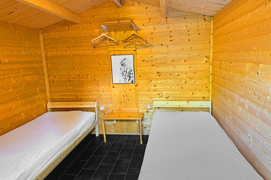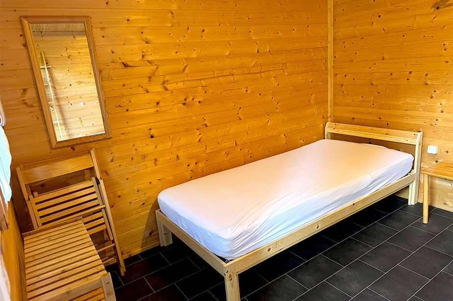 Du hast ein festes Dach über dem Kopf, wärmenden Holzgeruch in der Nase und ein bequemes Bett. Mehr braucht es manchmal gar nicht. Eine eigene kleine Terrasse mit Sitzgelegenheit ist perfekt zum Brotzeit machen und entspannen.