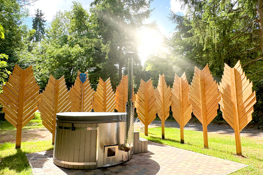 Lehn dich zurück und spüre die Wärme auf Deiner Haut, während Du den Blick in die Bäume schweifen lässt. Umgeben von Vogelgezwitscher und frischer Luft. Ein exklusiver Moment der Erholung, Freiheit und Wellness verbindet – bei Tag inmitten der Natur oder nachts unter dem funkelnden Sternenhimmel.